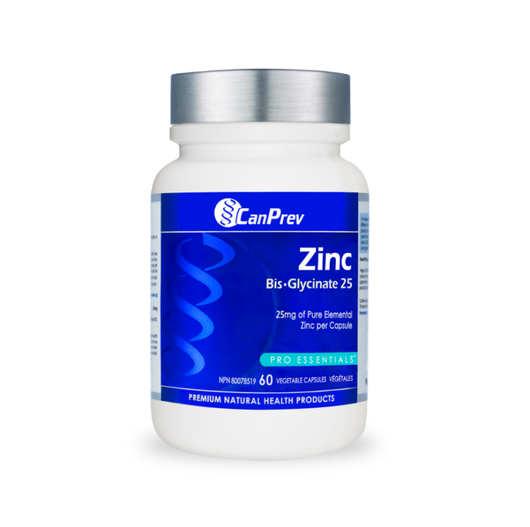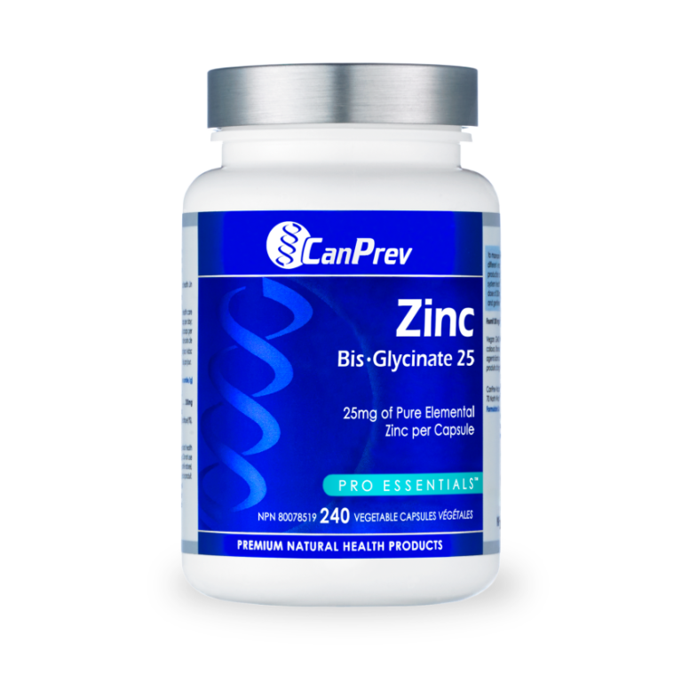 Zinc is required for the normal growth and development, metabolism, and functions of all cells. CanPrev’s Zinc Bis-Glycinate 25 is the