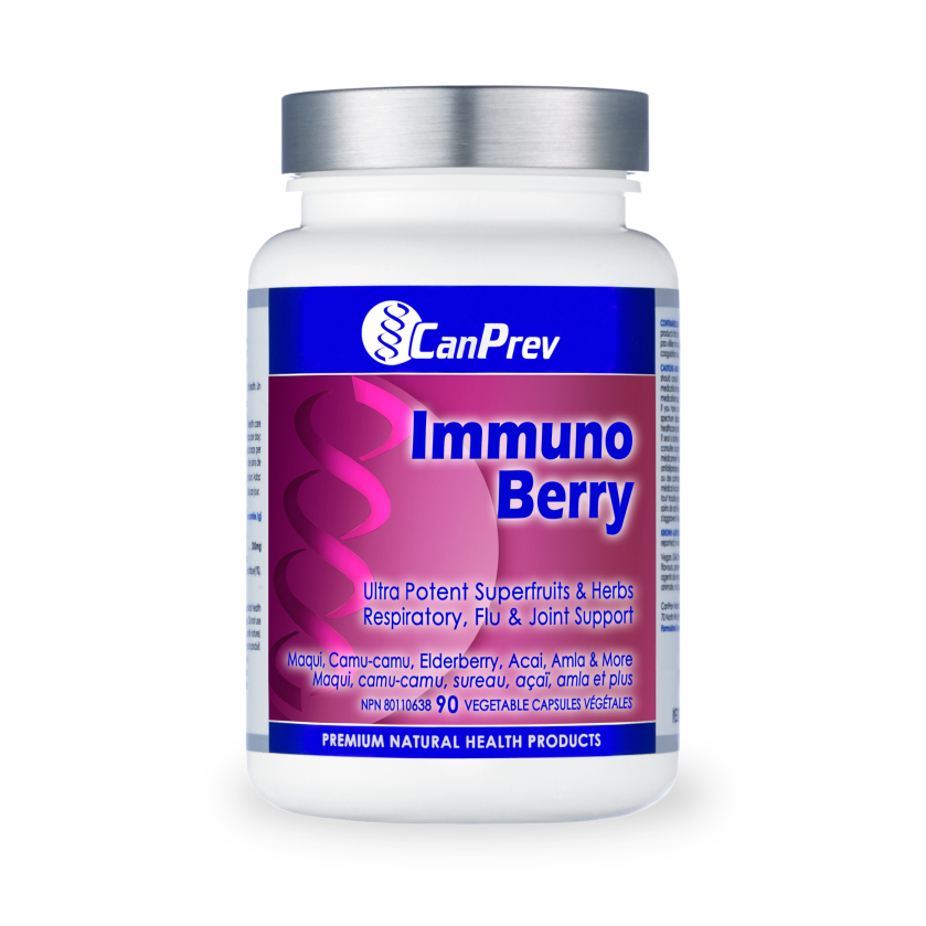 We’re held back when we don’t feel our best, whether it’s due to an unwanted cold, arthritic joint pain or low energy. CanPrev’s Immuno Berry complex combines powerful, antioxidant-rich berry superfruits and herbal extracts like astragalus and echinacea to support the immune system, help relieve joint pain and shorten the duration of colds. Nutrients like elderberry, pomegranate, camu-camu and maqui berry help protect against free radical damage and are reliable standbys when your body needs them most. Take 3 capsules per day at the first sight of symptoms to help fight illness, or simply add 1 capsule per day to your daily routine during cold and flu season to support your immune system and encourage healthy detoxification. The power of superfruits This exotic line-up of super fruits packs a punch! Maqui, acai and cranberries all contain potent antioxidants that can help prevent inflammation, balance blood sugar and positively impact cardiovascular health. Amla, camu-camu berries and acerola cherry have high vitamin C content–a well-known and important nutrient for supporting the immune system. Pomegranate and elderberry both contain antioxidants and polyphenolic compounds, which reliably protect against free radical damage that can go on to impact the immune system and cause other health issues. A well-rounded selection of berries and fruits to help bolster your immune system and fight off those pesky colds. An herbal helping hand Herbs have been relied upon for centuries in traditional medicine, and echinacea and astragalus are both well-known for their effectiveness in aiding cold and flu symptoms. Echinacea is high in antioxidants (flavonoids, dichroic acid, rosmarinic acid), and alkamides, compounds that are known to enhance antioxidant activity. Astragalus root, a staple in Traditional Chinese Medicine, is also a powerful antioxidant with the ability to stimulate the immune system and inhibit free radical damage. It’s also an adaptogen that helps the body adapt to stress.