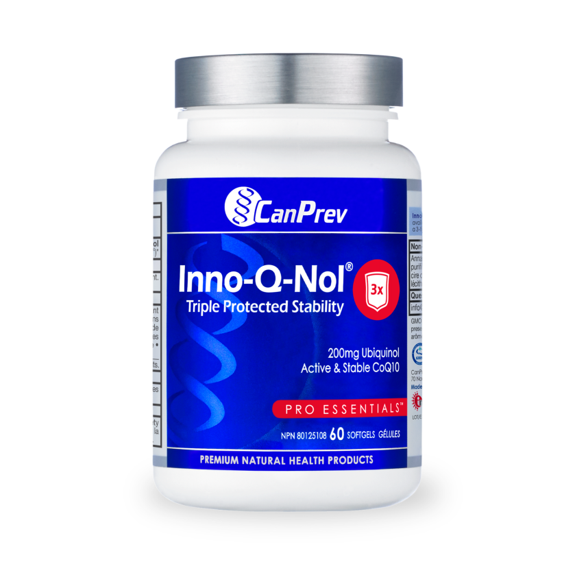 CanPrev’s Inno-Q-Nol® features ubiquinol, the most bioactive form of coenzyme Q10 available. Exclusive to Inno-Q-Nol® is a unique patented process that features the triple protected stability of ascorbyl palmitate (vitamin C) to help stop internal oxidation, medium-chain triglycerides to guarantee overall stability and annatto seed extract to prevent external oxidation, ensuring your CoQ10 retains its highest potency. Inno-Q-Nol® is a trusted, body-ready form of CoQ10 with maximum stability for the best cellular and cardiovascular care.